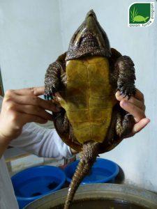 On the 10th of June 2015 the Forest Protection Department (FPD) in Ninh Binh Province, Northern Vietnam, confiscated 27 endangered Big-headed Turtles (Platysternon megacephalum) and a single Wattle-necked Softshell Turtle (Palea steindachneri). Unfortunately two Big-headed Turtles were in very poor condition after the confiscation and died only hours later. The remaining 25 Big-headed Turtles along with the Wattle Necked Softshell Turtle were transferred to the Turtle Conservation Centre (TCC) in Cuc Phuong National Park, Ninh Binh Province. Many of the remaining animals are in poor condition and being cared for at the centre’s quarantine facility.