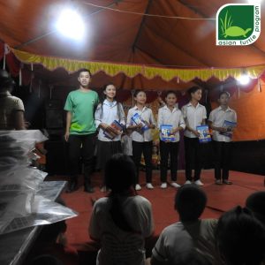 The ATP presented small gifts to children for the drawing competition “Dong Mo turtle and village”. Photo by Nguyen Van Trong – ATP/IMC