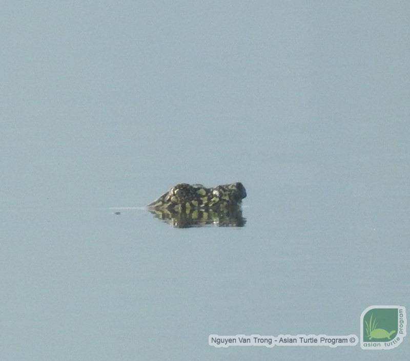 On the 19th of January 2018 we were very excited to capture the best photograph of the world’s rarest turtle in the wild. Nguyen Van Trong of the Asian Turtle Program (ATP) of Indo Myanmar Conservation (IMC) was able to take the picture while working to monitor Swinhoe’s Softshell Turtles (Rafetus swinhoei) in Dong Mo Lake on the outskirts of Hanoi, Vietnam. The species is critically endangered with only three animals currently known in existence globally. Monitoring of the only known wild location for the species is critically to providing a level of protection and increasing our understanding of the species.