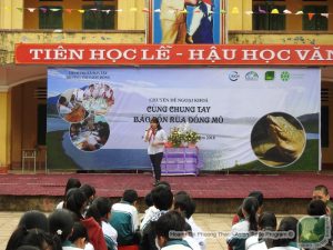 A student is eloquenting about the important of conservation to Swinhoe’s softshell turtle. Photo by: Hoàng Thi Phuong Thao – ATP/IMC.