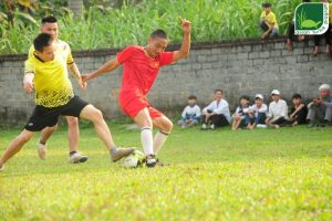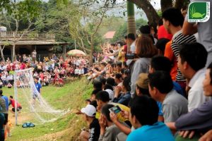 Fifteen teams from 15 villages surrounding Dong Mo Lake competed for this year’s championship, which is the ninth season of the Cup. Undeniably, the tournament has gradually become a cultural community event which receives great attention from local residents. During this year’s Football Cup, around 600-700 spectators were present to watch and cheer for their beloved team(s). After ten days of fierce competition, the champions were revealed: Nha Tho village team from Kim Son commune and Chong village team from Yen Bai commune. They were both tough teams and former winners of the trophy. At the awards ceremony, Mr. Nguyen Huy Quyet, representative from the Peopl