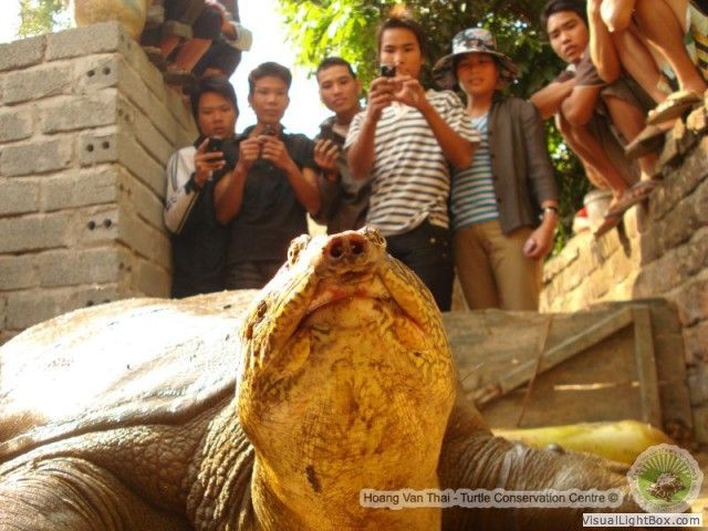 Ngày 1/11/2008, một trận lũ ập tới khiến con đập của hồ Đồng Mô bị vỡ tạo cơ hội cho cá thể rùa thoát ra khỏi hồ. Ngay sau đó, một tấm lưới chắn đã được giăng ngang khu vực ngập úng dài khoảng 4km kể từ đầu đập để ngăn cá thể này thoát ra sông Hồng. Sáng ngày 26/11/2008, một ngư dân đã bắt được rùa trong khu vực chắn lưới.