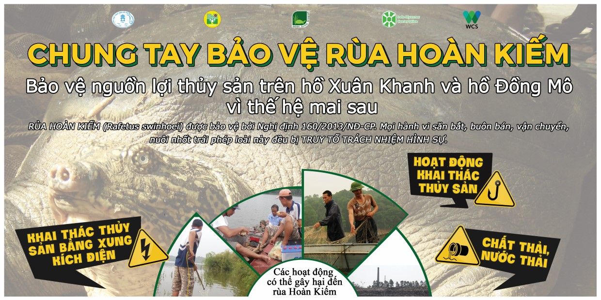 Over the past decade, the Asian Turtle Program (ATP) of Indo-Myanmar Conservation (IMC) has conducted several surveys to identify priority areas of conservation and research for the Swinhoe’s Softshell Turtle (Rafetus swinhoei) known locally in Vietnam as the Hoan Kiem turtle, the world’s most endangered freshwater turtle species. Dong Mo Lake, where one of three living individuals known globally of the species lives, sits predominantly within Phu Yen village of Yen Bai commune (Ba Vi district, Ha Noi). Therefore, the daily activities of these local people have a significant impact on the conservation for this species here. Raising the awareness of the local community about the conservation of Hoan Kiem Turtle and the sustainable use of aquatic resources at Dong Mo Lake is extremely necessary.